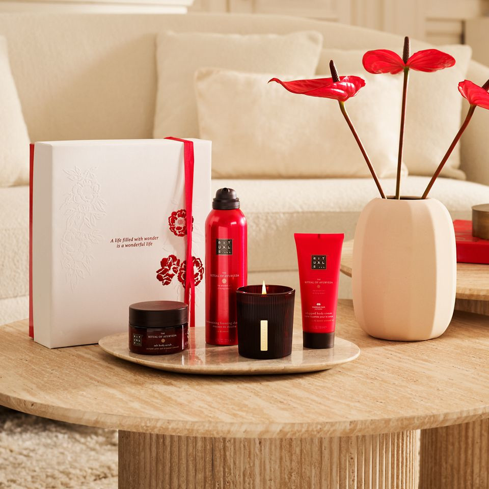 Potěšte přítele, člena rodiny nebo sami sebe dárkovou sadou The Ritual of Ayurveda Medium! Uvnitř najdete sprchovou pěnu, tělový peeling, tělový krém a vonnou svíčku. Zažijte vnitřní harmonii s těmito uklidňujícími a aromatickými produkty obohacenými esencí indické růže a sladkého mandlového oleje. Luxusní dárkovou sadu můžete použít k uložení fotografií, dopisů nebo jiných cenných předmětů.