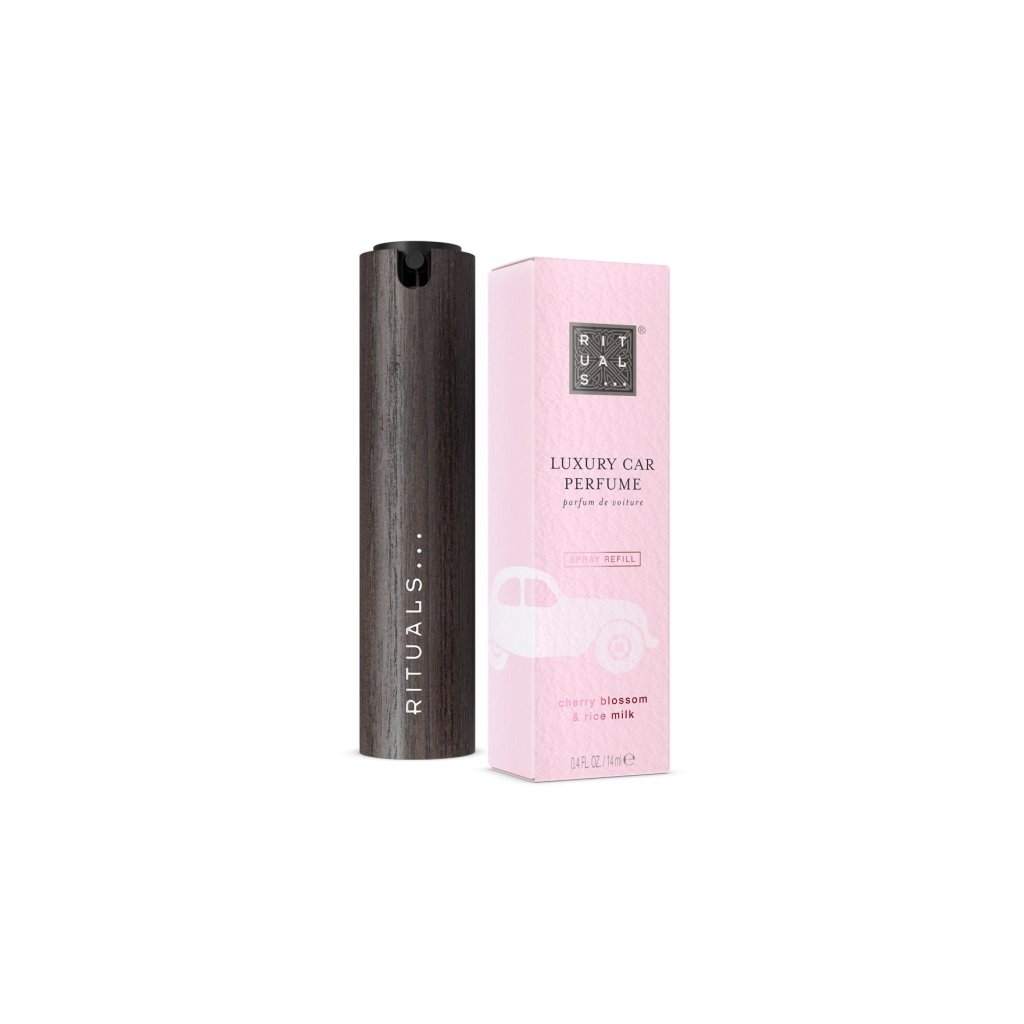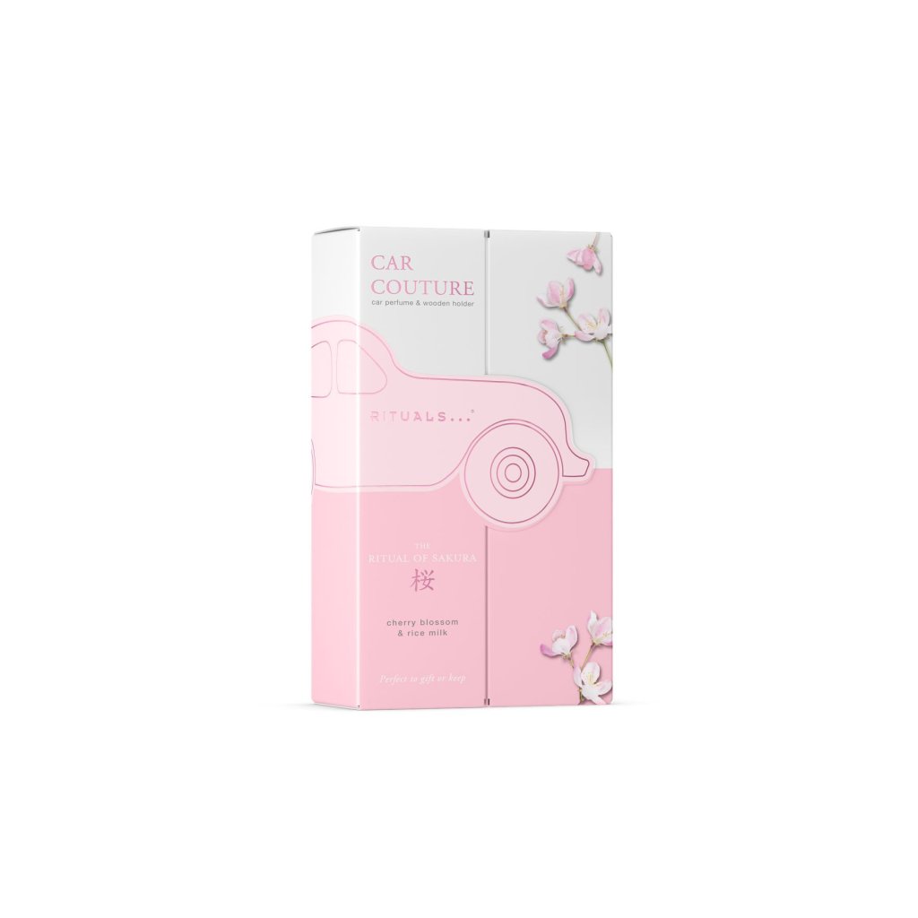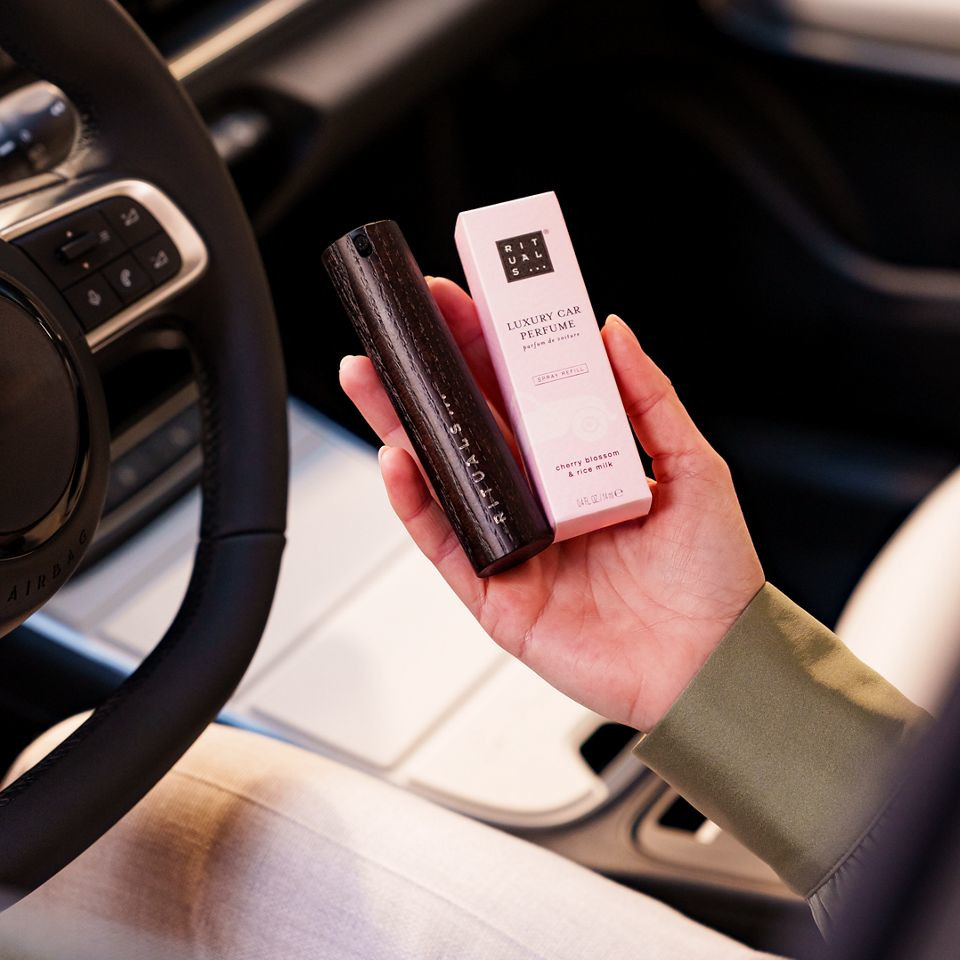 Objevte doplňovatelný parfém do auta a dřevěný držák s jemnou vůní třešňových květů a rýžového mléka od The Ritual of Sakura.