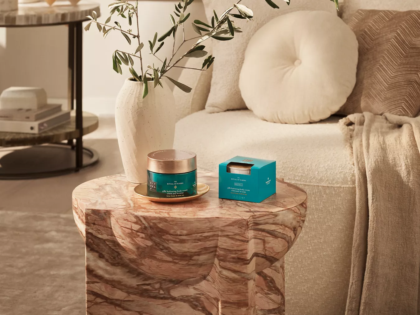 Výhodné balení obsahuje luxusní tělový krém The Ritual of Karma a snadno použitelnou náplň, takže si můžete svůj oblíbený tělový krém užívat znovu a znovu.