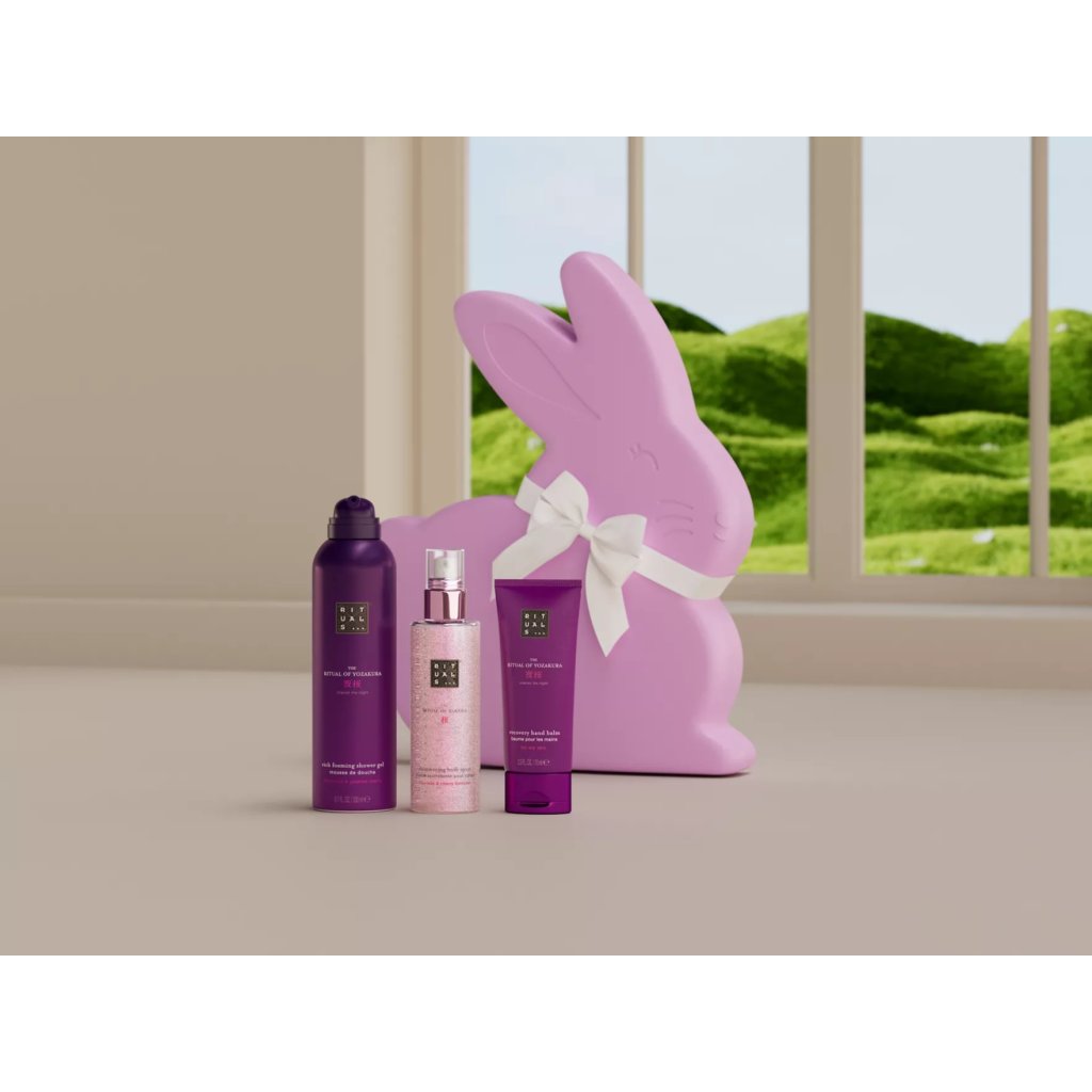 Hledáte velikonoční dárek, který vydrží déle než čokoláda? Tato limitovaná edice dárkové sady ve tvaru zajíčka je krásným překvapením. Uvnitř najdete tři luxusní produkty z řady The Ritual of Sakura a The Ritual Yozakura – včetně luxusního pěnivého sprchového gelu, třpytivého tělového spreje a hydratačního balzámu na ruce. Radostný způsob, jak oslavit jaro jemnou, sladkou vůní a vzácnými okamžiky péče o sebe.