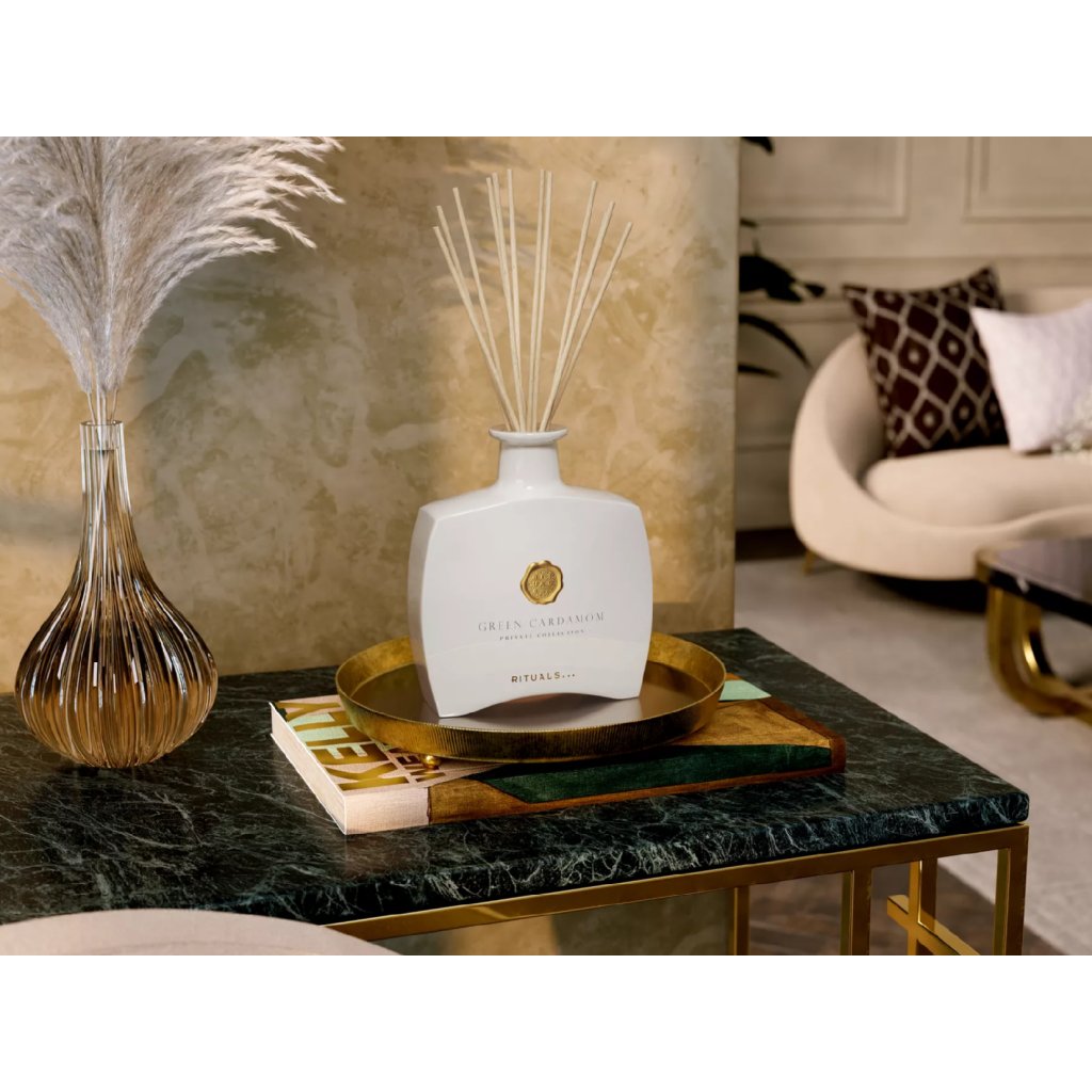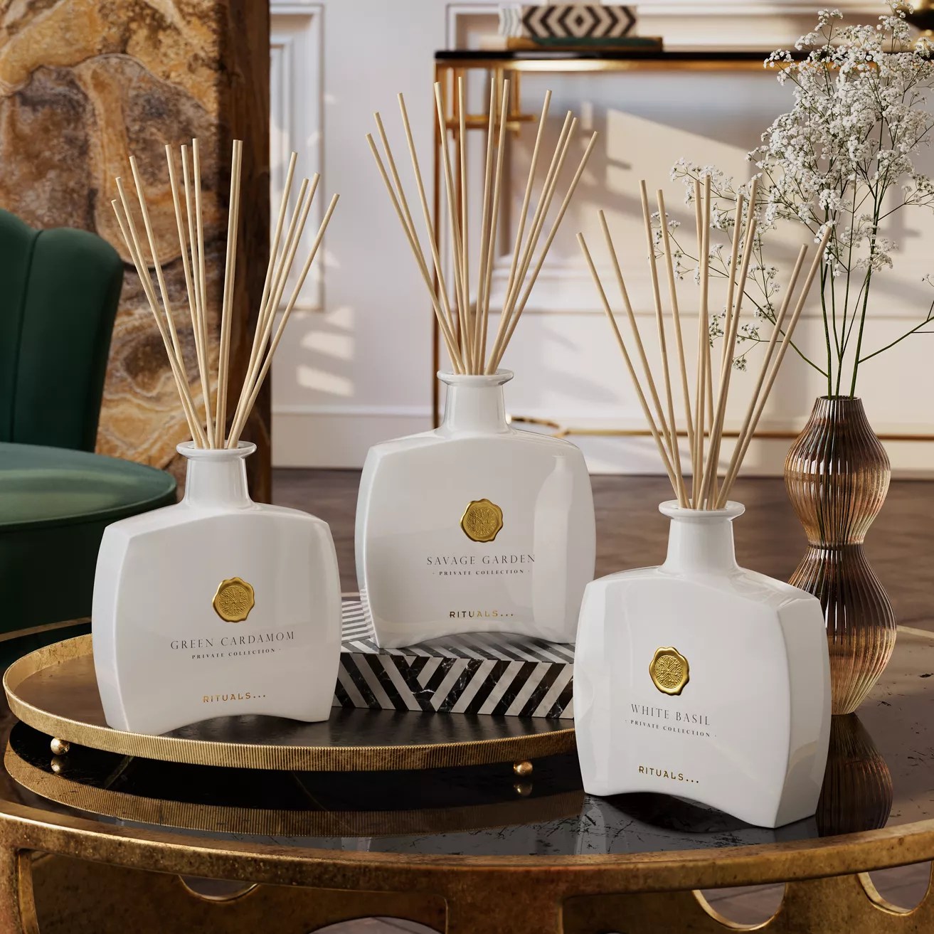 Vytvořte si příjemnou atmosféru domova pomocí těchto luxusních vonných tyčinek z naší Private collection. Krásně navržené skleněné flakony, jejichž základem je pryskyřičná vůně kardamomu, představují stylový způsob provonění vašeho domova. Zářivá a okouzlující kombinace jiskřivé mandarinky a šepotu sladkého a bohatého koření, dřevité zadní tóny se sladkým jantarem a pižmem dávají prostor luxusní vůni, která dýchá pozitivitou a exkluzivitou. Elegantní flakon z lesklého skla má kovový, poloprůhledný povrch a zajistí elegantní a výjimečnou atmosféru až na 5 měsíců. Vyzkoušejte kombinaci vonných tyčinek s odpovídající svíčkou a umocněte tak svůj zážitek z vůně.