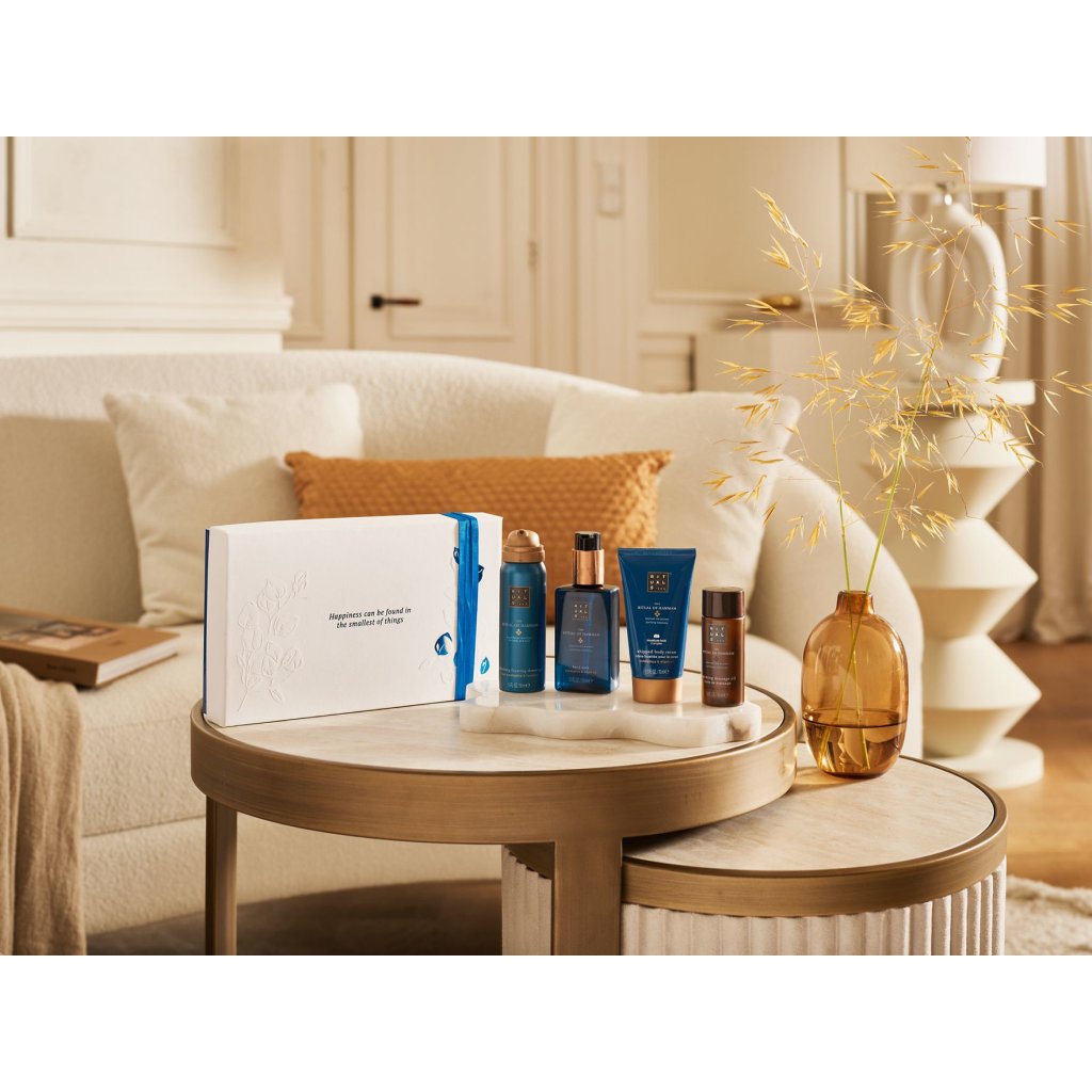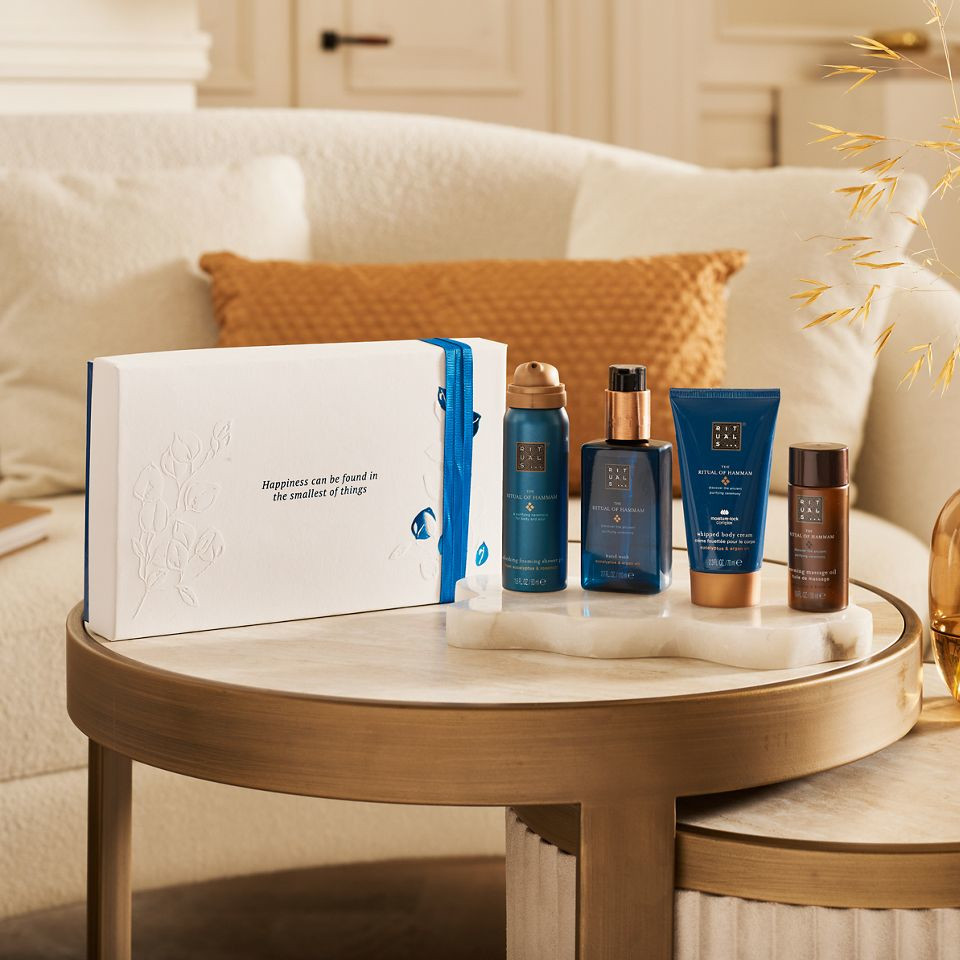 Dopřejte si jednu z nejstarších tradic očisty s malou dárkovou sadou The Ritual of Hammam, inspirovanou očistnými tradicemi parních lázní. Uvnitř najdete sprchovou pěnu, masážní olej, tělový krém a mýdlo na ruce. Tato sada s obsahem rozmarýnu, arganového oleje a eukalyptu nabízí osvěžující zážitek, který revitalizuje tělo i mysl. Pěnivý sprchový gel (50 ml) • Gelová pěnivá formule • S eukalyptem a arganovým olejem Masážní olej (50 ml) • Luxusně bohatá formule • Osvěžující bylinná vůně Tělový krém (70 ml) • Revitalizuje a hydratuje • Výživný arganový olej Mýdlo na ruce (110 ml) • Výživná formule bez mýdla • Doplňitelné