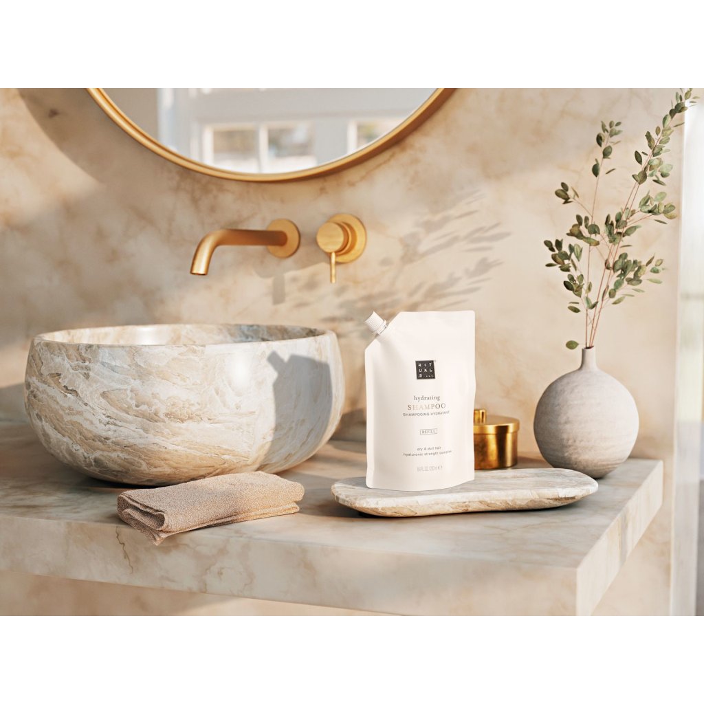 Proměňte suché, matné vlasy pomocí této hydratační náplně do šamponu. Komplex Hyaluronic Strength Complex s obsahem hyaluronu a přírodního betainu vlasy hluboce hydratuje, vyživuje a vyhlazuje, zvyšuje jejich lesk a zlepšuje jejich upravitelnost. Arganový olej dodává vlasům hebkost a vitalitu, zatímco kyselina hyaluronová v nich zadržuje vlhkost, obnovuje rovnováhu a chrání je před poškozením. Se svěží, květinovou a ovocnou vůní s nádechem pomeranče, jasmínu, broskve a pižma.