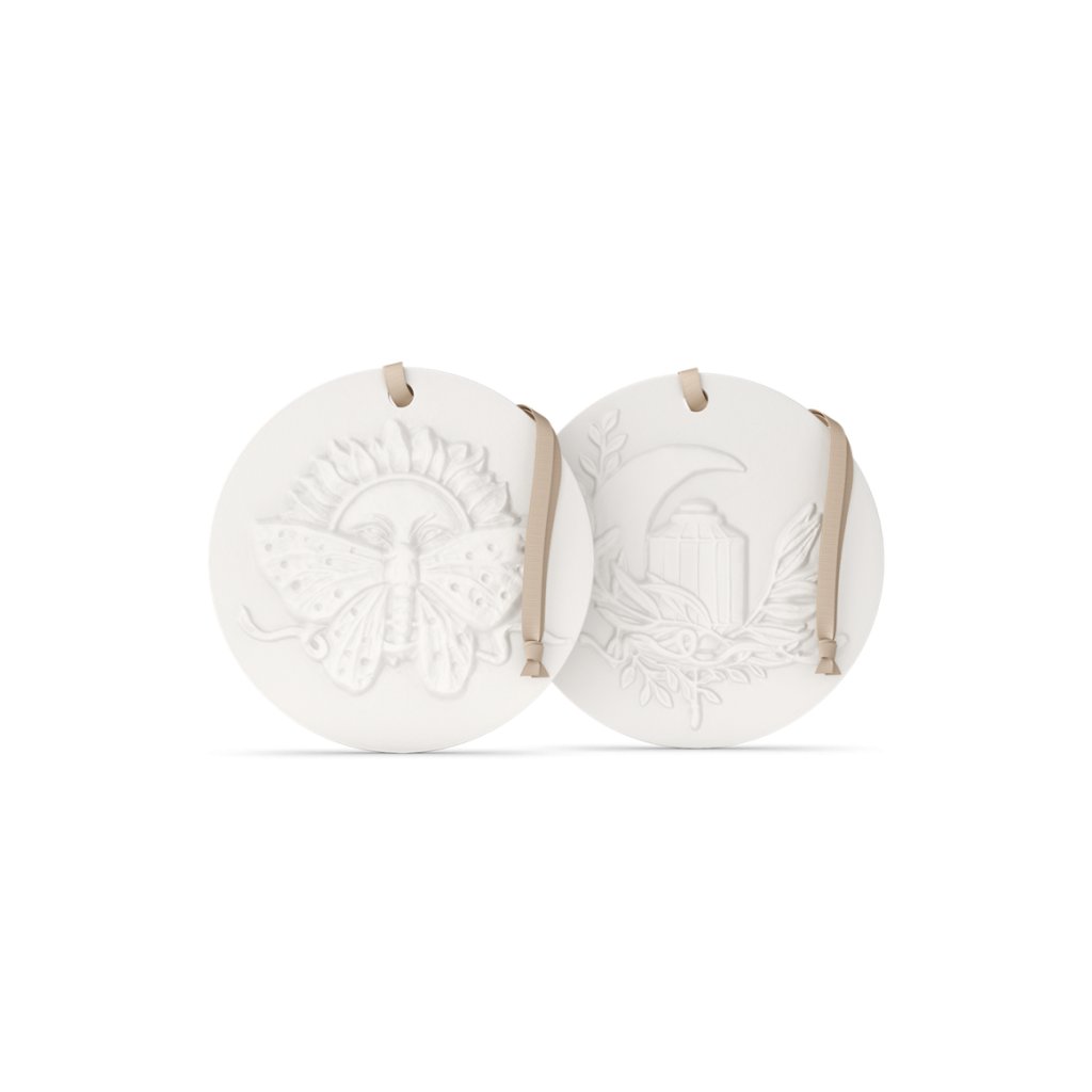 Dodejte svému domovu nádech elegance a vůně s vonnými přívěsky Intuitia z naší limitované edice, které rozhodně musíte vyzkoušet. Tyto porcelánové přívěsky s luxusní směsí šafránu, vanilky a santalového dřeva naplní váš prostor květinovou, dřevitou a kořeněnou vůní. Jsou ideální pro všechny vnitřní prostory, vydrží až 2 měsíce a slouží jak jako dekorace, tak jako příjemná vůně. Zavěste je kamkoli, od malých prostorů po vánoční stromky, a jakmile vůně vyprchá, znovu je nastříkejte interiérovým parfémem Intuitia.