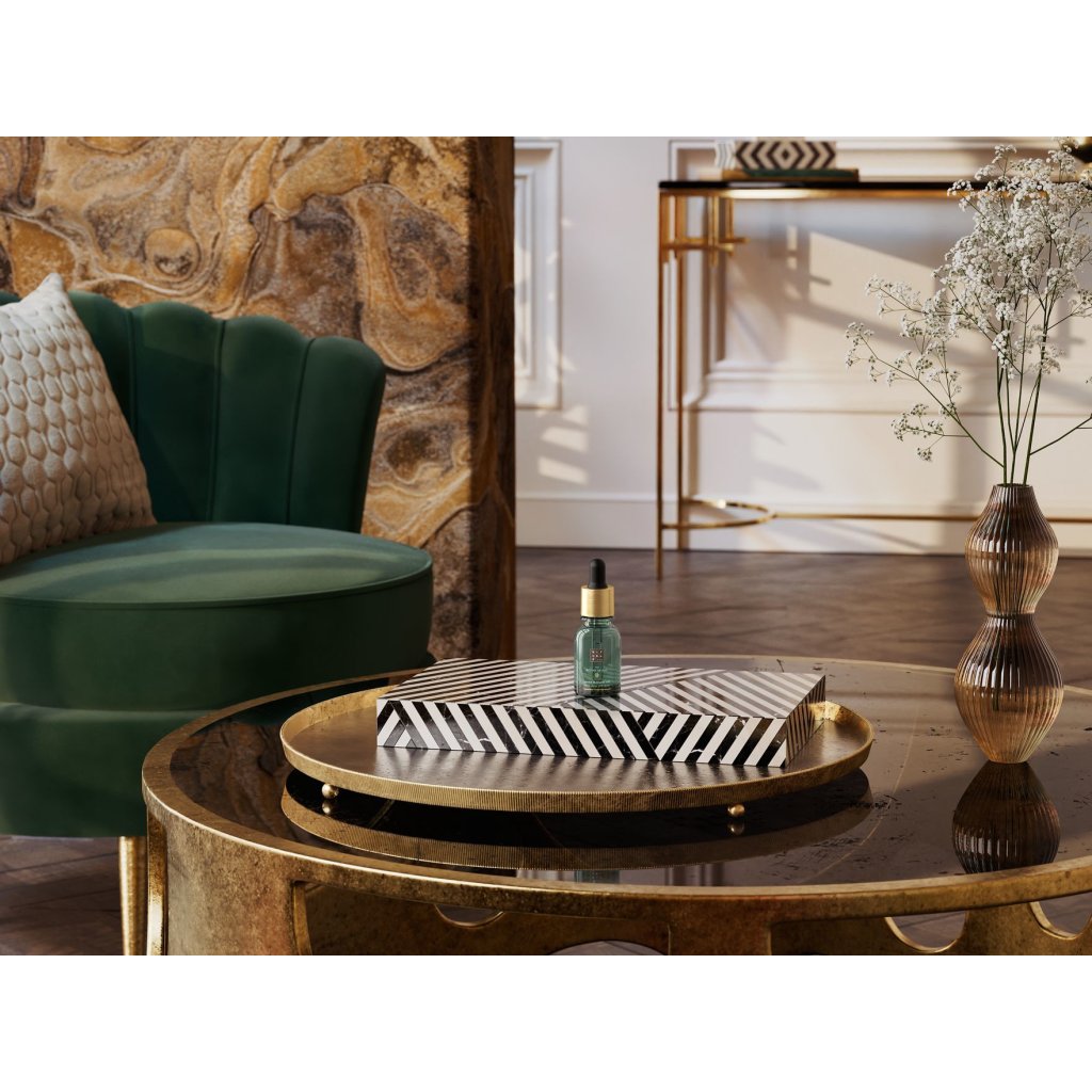 Vytvořte si klidné útočiště s difuzérem minerálních kamenů The Ritual of Jing, který je určen k podpoře relaxace a klidného spánku. Uklidňující směs levandule a santalového dřeva jemně naplní váš prostor, pomůže vyčistit mysl a připravit se na spánek. Kamenný difuzér, který je stylovým doplňkem vašeho nočního stolku, je dodáván v krásné skleněné nádobce s 20ml lahvičkou s vůní, která umožňuje regulovat intenzitu vůně nastavením přidaných kapek.