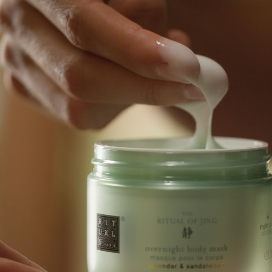 Dopřejte si dokonalý zkrášlující spánek s noční tělovou maskou The Ritual of Jing. Tento lehký gelový krém je obohacený o komplex noční péče, který regeneruje, doplňuje a vyživuje dehydratovanou pokožku během spánku a navrací jí pružnost a elasticitu*. Obohaceno o zklidňující santalové dřevo a levanduli.