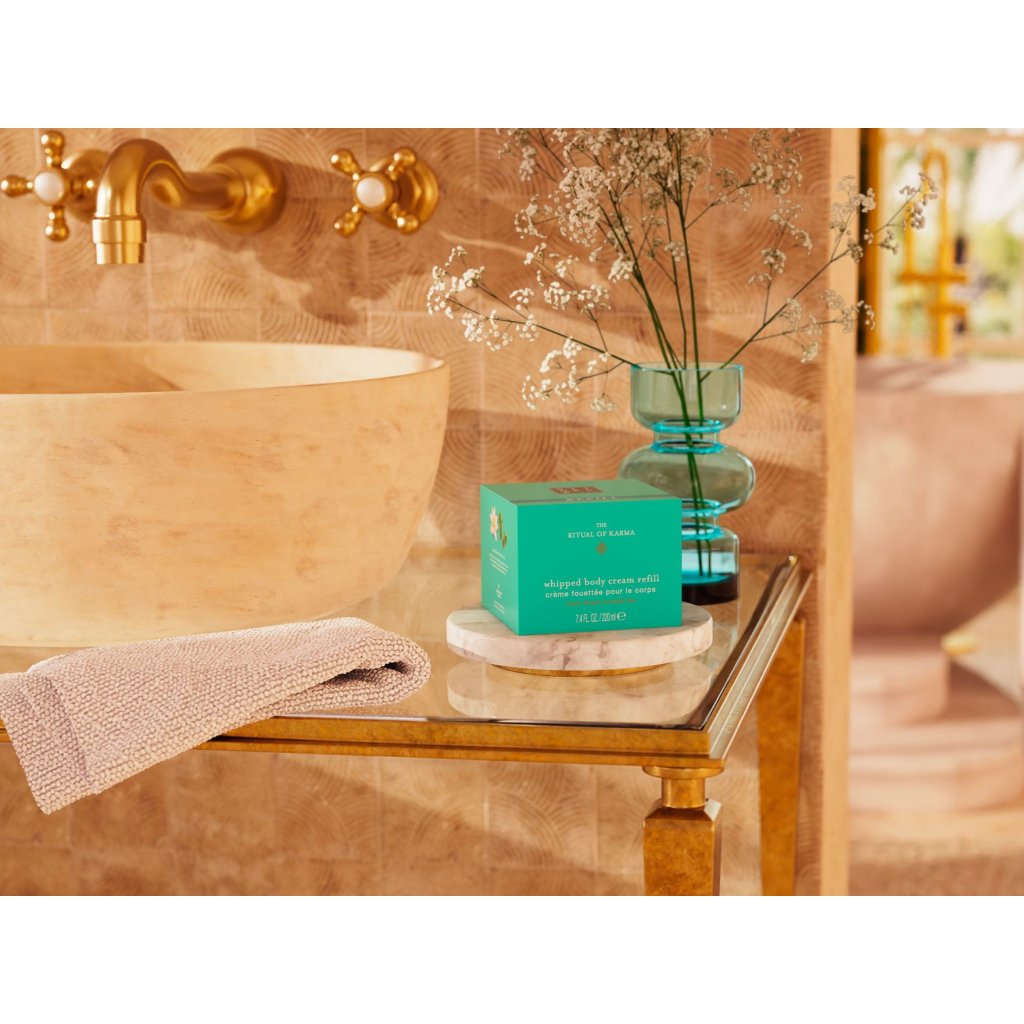 Je to stejný tělový krém, jaký znáte a máte rádi, jen s menším množstvím obalů. Doplňte si zásoby chytrým způsobem s touto náplní z řady The Ritual of Karma. Když se vaše pokožka cítí dehydrovaná nebo by potřebovala trochu hýčkat, tento tělový krém obsahuje náš Hydra-Boost Complex, jedinečný hydratační komplex z aloe vera, skvalenu a řas, který pomáhá zklidnit suchou a žíznivou pokožku, uzamknout vlhkost po sprchování a obnovit pružnost a elasticitu pokožky. Jednoduše jej vložte do krásné skleněné nádobky s tělovým krémem, rozetřete po celém těle a užívejte si hedvábně jemnou pokožku.