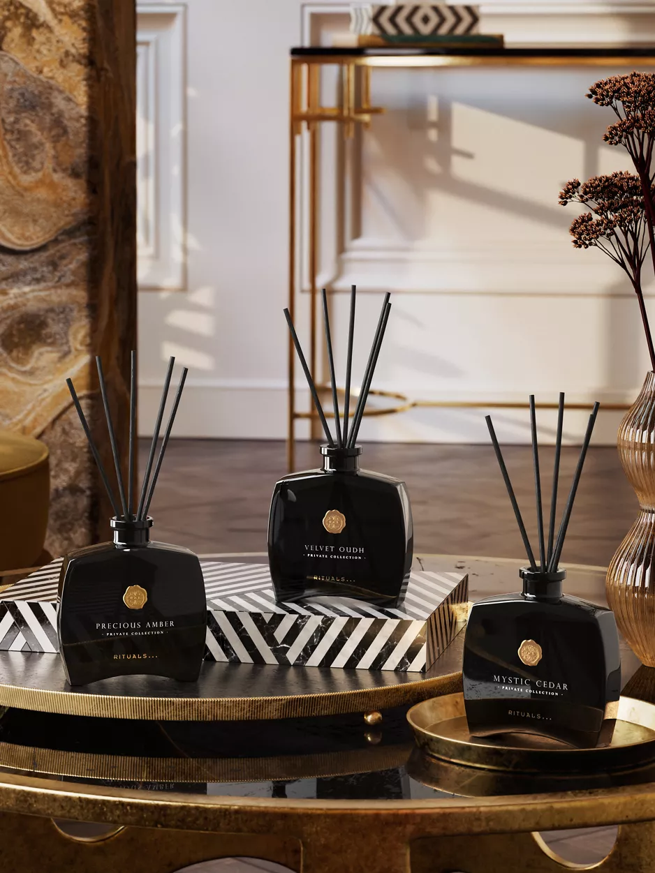 Proměňte menší místnosti svého domova pomocí těchto mini vonných tyčinek z naší soukromé kolekce. Je to cesta do sofistikovanosti a tajemna s kořeněnými tóny hřebíčku a kadidla, které obklopují srdce z bohatého labdana a zemitého pačuli. Plynule se mísí se základem z cedru. Stylová skleněná lahvička se pyšní kovovým povrchem a krásně doplní jakýkoli interiér a zajistí výjimečnou atmosféru až na 6 týdnů. Vyzkoušejte kombinaci vonných tyčinek s odpovídající svíčkou a umocněte tak svůj zážitek z vůně. Lze donekonečna doplňovat.