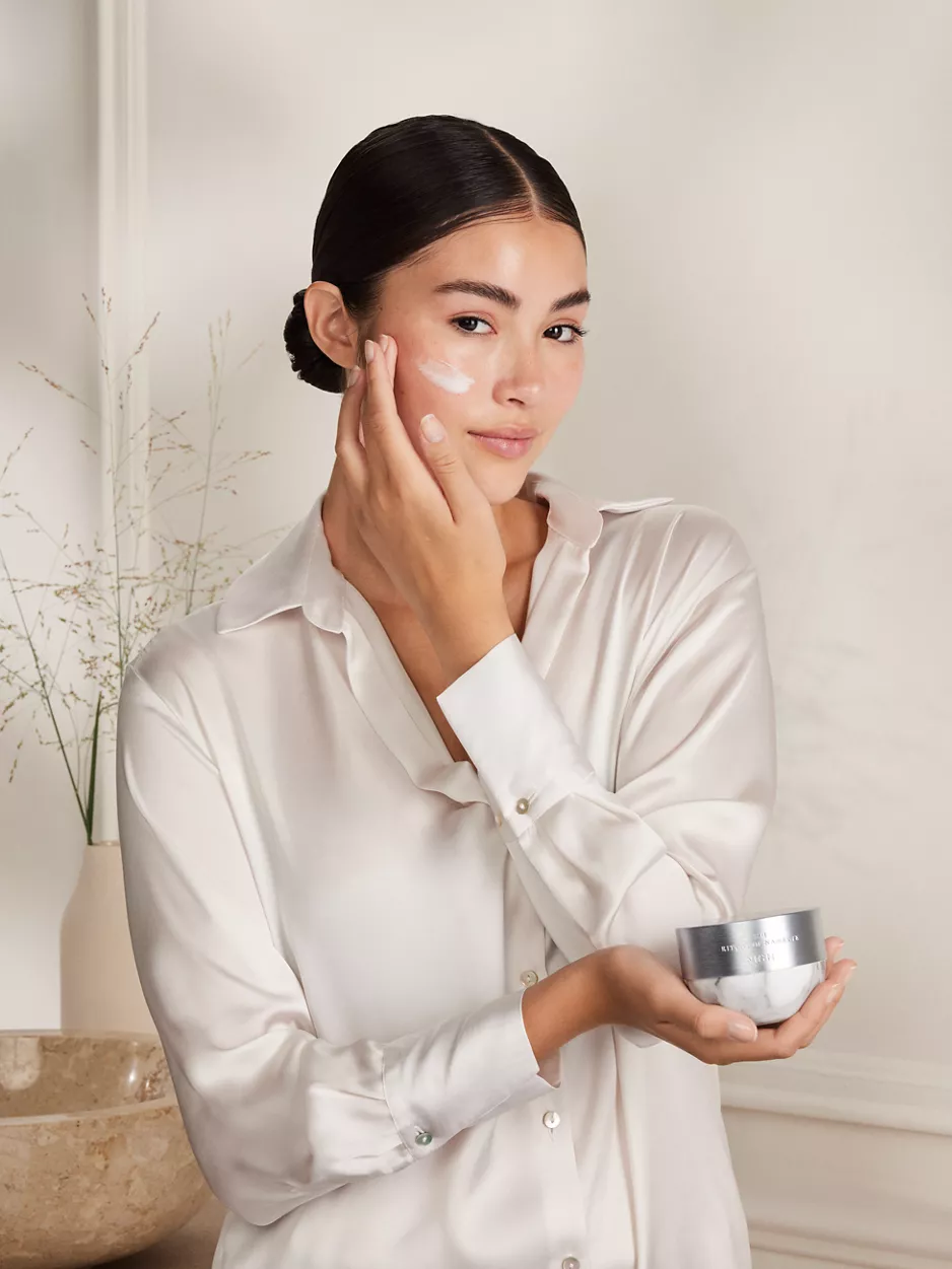 Kyselina hyaluronová a ashwagandha dodávají pleti vlhkost a napravují poškození způsobené životním prostředím.