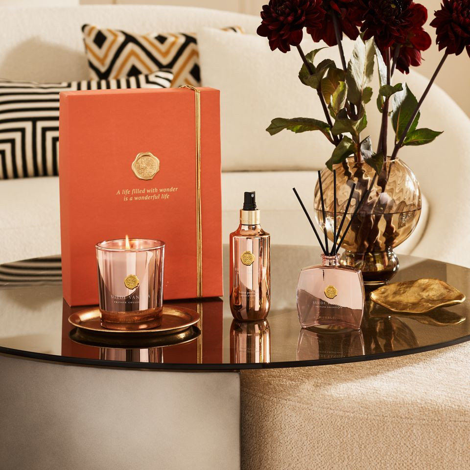 Tato nádherná dárková sada Suede Vanilla z kolekce Private Collection od Rituals je dokonalým dárkem pro přátele, členy rodiny nebo pro vás samotné! Je to ideální způsob, jak se seznámit s touto úžasnou vůní do interiéru, která obsahuje všechny její nejprodávanější produkty. Po použití můžete dárkovou krabičku využít k ukládání fotografií, dopisů nebo jiných předmětů.