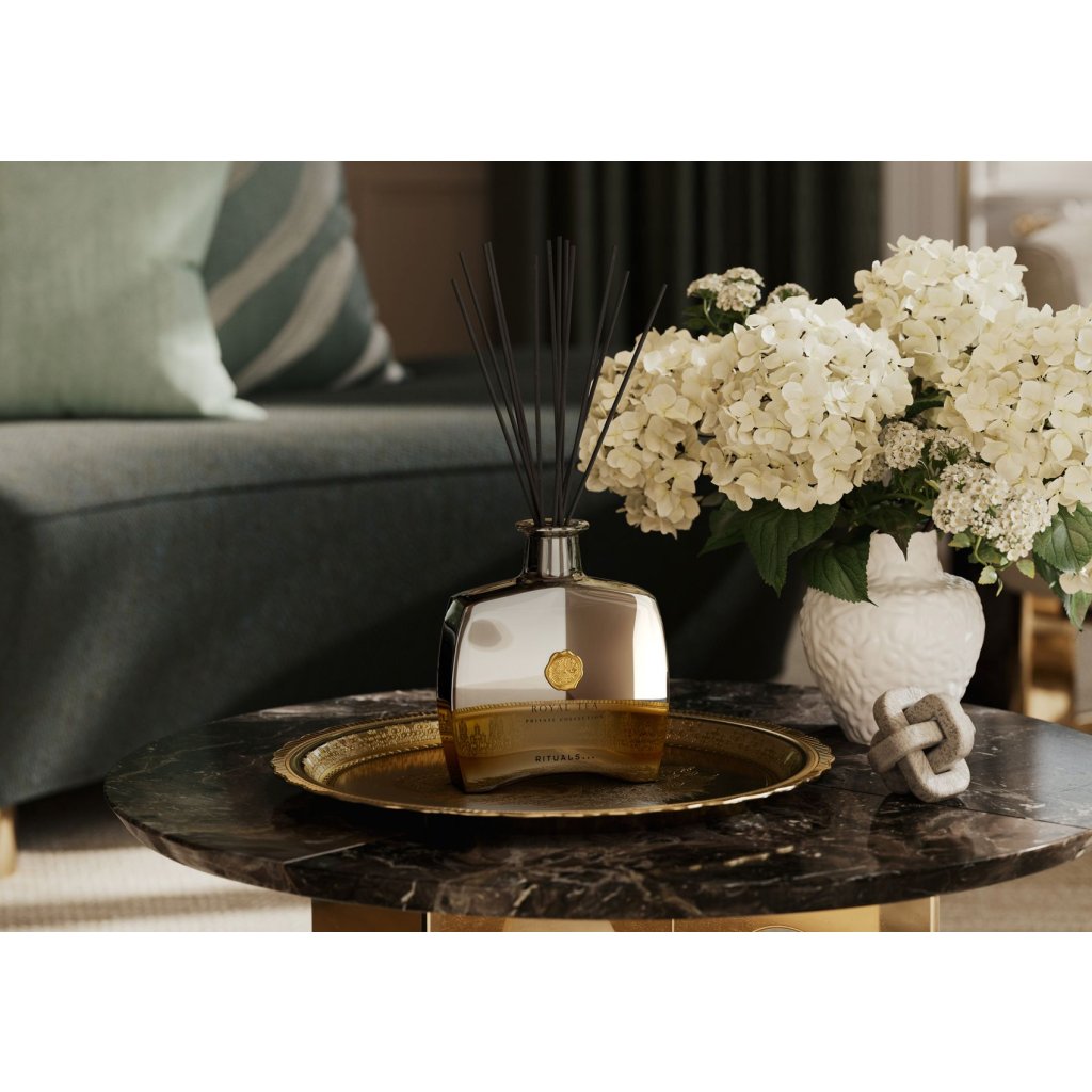 Povzbuďte své smysly osvěžující směsí zeleného čaje, ovocných fíků, citrusů a dřevitých tónů s našimi opulentními mini vonnými tyčinkami Royal Tea.