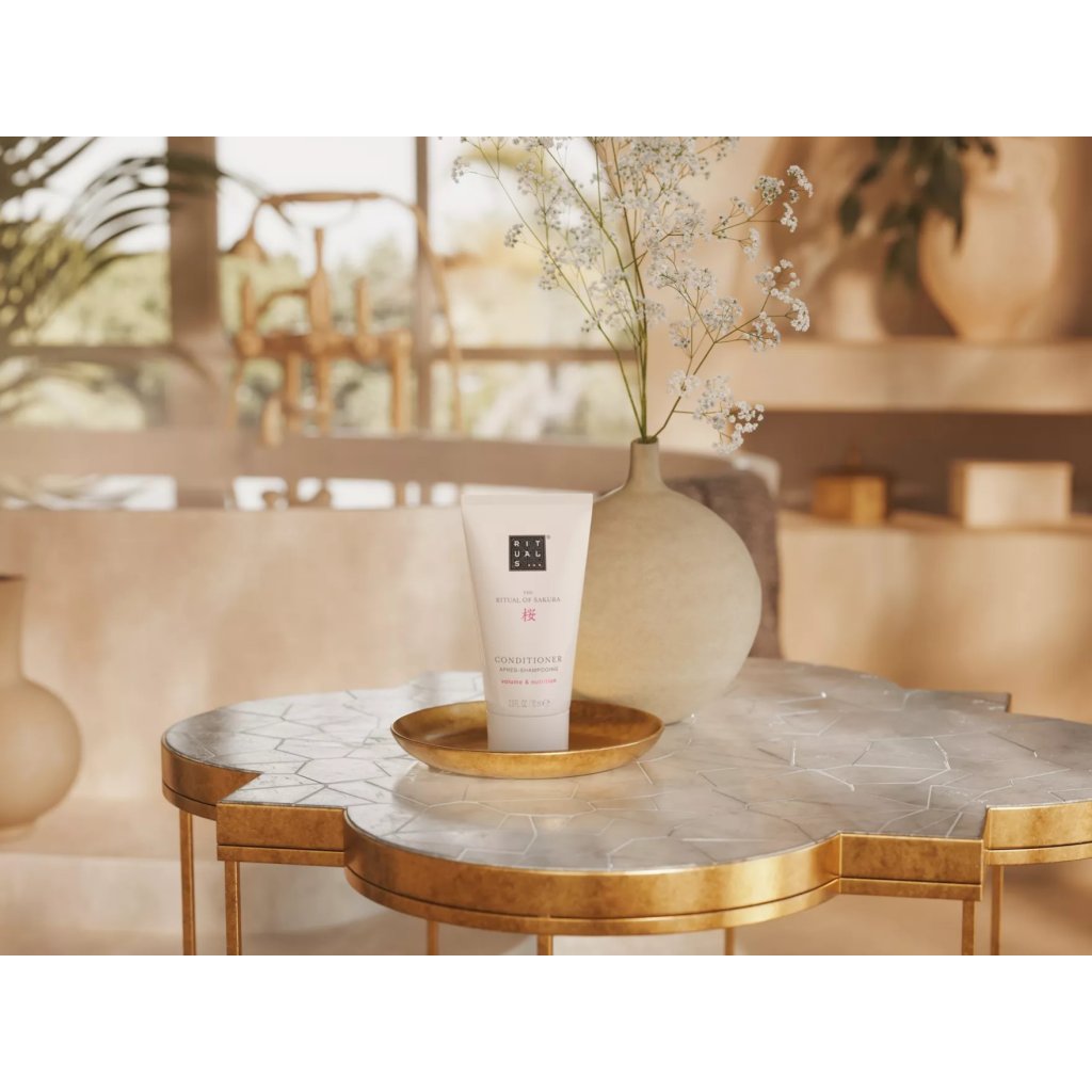 Dopřejte svým vlasům nový začátek s kondicionérem The Ritual of Sakura, který zajistí hladké, objemné a lesklé vlasy. Obsahuje pšeničné proteiny a semínka chia pro ochranu a zvětšení objemu účesu a o výtažek z rýže a olej z makadamových semínek, které pomáhají obnovit rovnováhu vlhkosti vlasů a posílit je. Tento vyživující a rozčesávající kondicionér je vhodný pro každodenní použití a pro všechny typy vlasů, ale obzvláště dobře působí na matné nebo jemné vlasy. Pro dosažení nejlepších výsledků používejte v kombinaci se šamponem ze stejné kolekce.