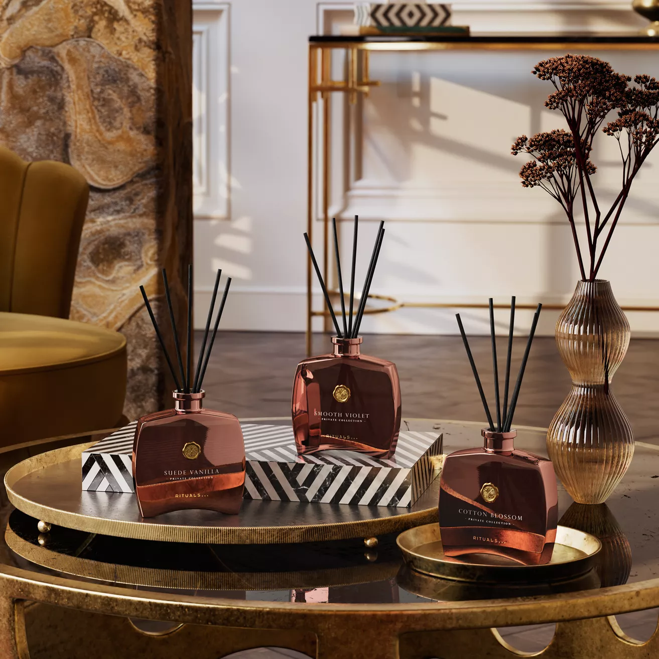Vytvořte si doma příjemnou atmosféru s těmito nádherně navrženými vonnými minityčinkami z naší Private collection. Naše Smooth Violet poskytuje relaxační a uklidňující vůni, která kombinuje ovocné akcenty s květinovými prvky, jako je růže a lístky fialky. Hřejivost vůni dodává santalové dřevo a decentní tóny pačuli, pižma a jantaru.