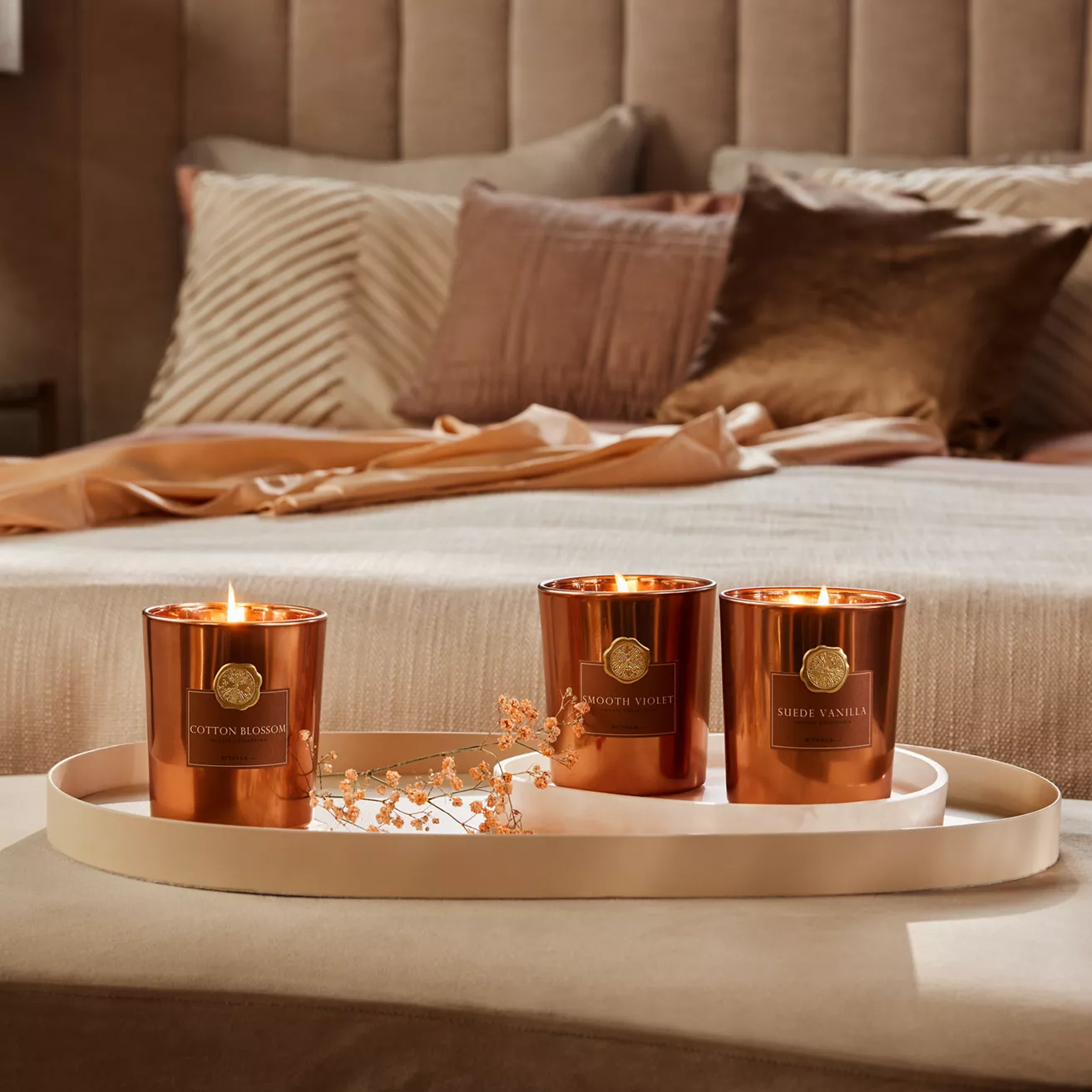 Naplňte svůj domov hřejivou a uklidňující směsí sladkých květin, svěžího ovoce a krémového dřeva s naší luxusní svíčkou Smooth Violet.