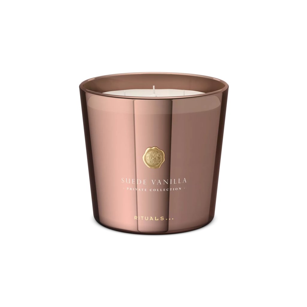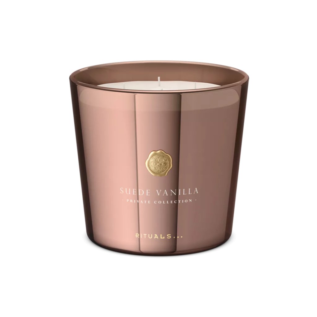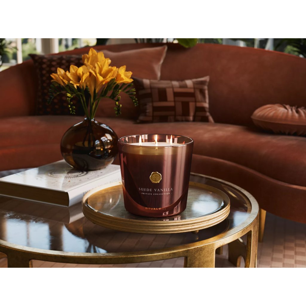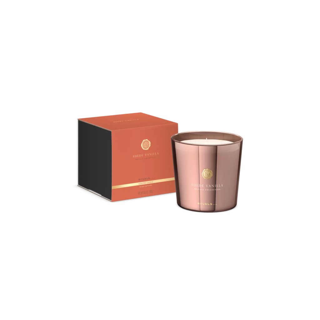 Zklidněte svou mysl a navozujte pocit klidu díky požitkářské vůni naší luxusní svíčky Suede Vanilla.