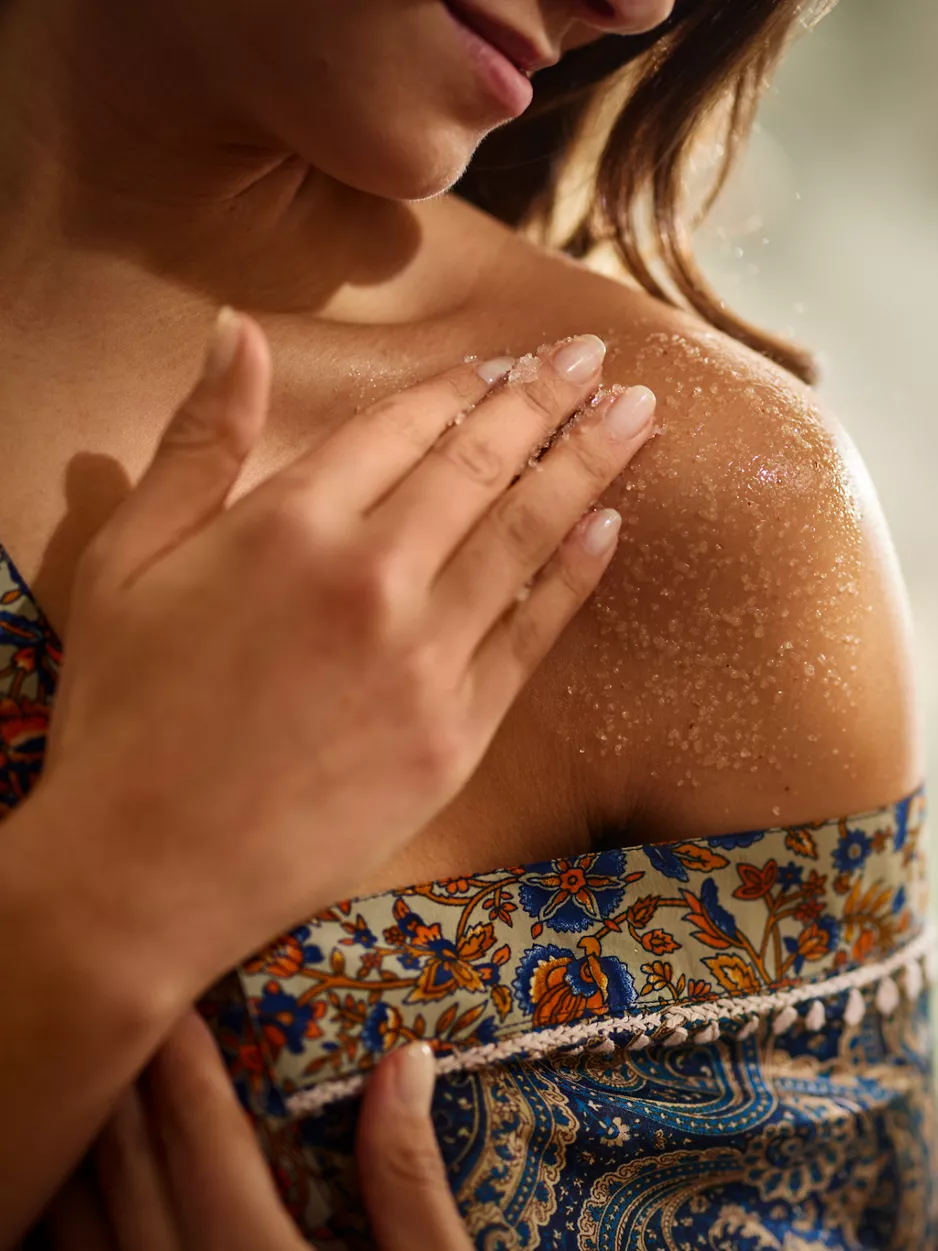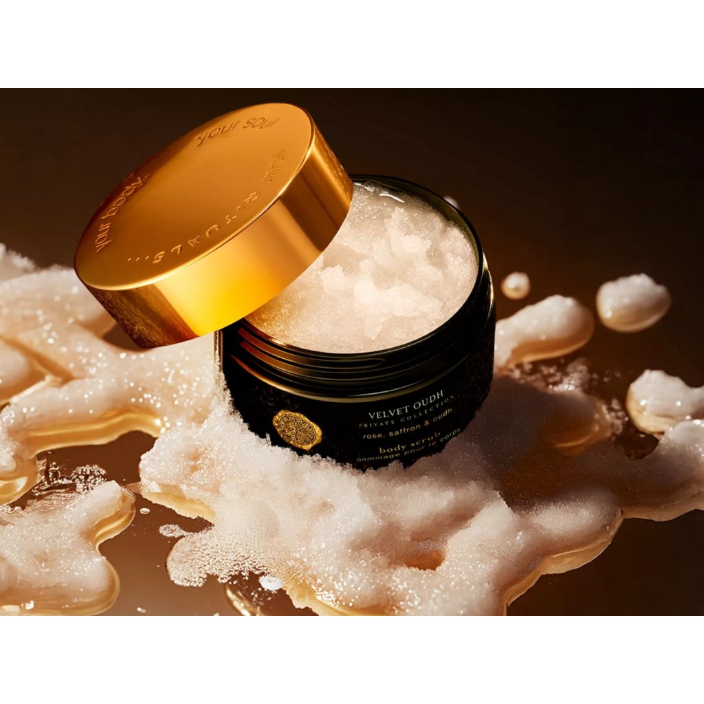 Proměňte svou péči o tělo pomocí tohoto luxusního olejového peelingu. Díky bohatému aroma oudhu, šafránu a růže poskytuje jemné, ale důkladné exfoliační účinky pro nádherně hebkou pokožku.