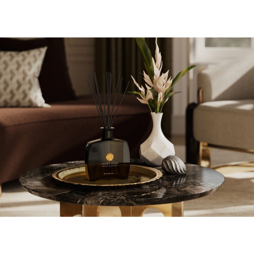 Ponořte svůj domov do hřejivé vůně Velvet Oudh, kde se bohatý šafrán a jemná růže mísí s okouzlující základnou opulentního oudhu. Tyto elegantní vonné tyčinky z naší soukromé kolekce neustále uvolňují teplou a tajemnou vůni, která každému prostoru dodává nenucenou sofistikovanost. Krásná skleněná lahvička dodá vašemu interiéru rafinovaný nádech. Zkuste je zkombinovat s odpovídající svíčkou, abyste prohloubili svůj zážitek z vůně.