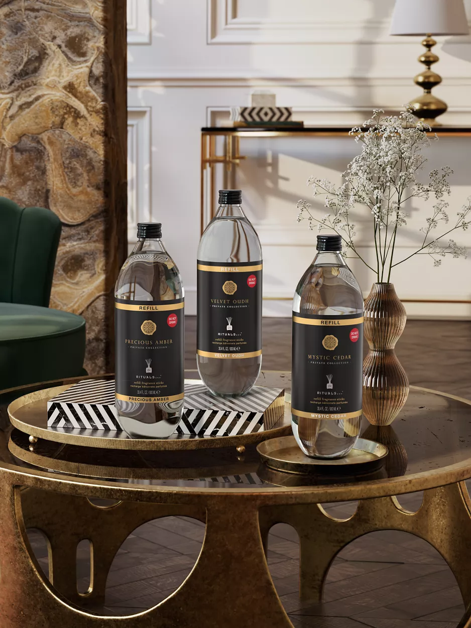 Udržujte svůj domov krásně provoněný teplou a lahodnou vůní Velvet Oudh, kde se šafrán a jemná růže mísí s bohatou oudovou základnou. Tato 900ml náplň vám umožní snadno doplnit jakýkoli z našich doplňovatelných skleněných držáků na vonné tyčinky, abyste si mohli znovu a znovu užívat teplou, příjemnou vůni. Sada obsahuje nové náhradní tyčinky spolu s náplní.