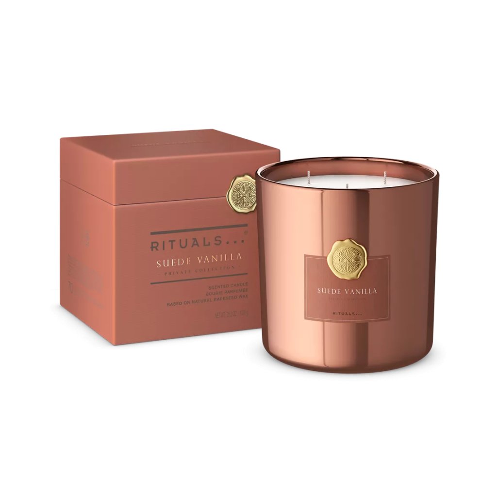 Vytvořte si doma atmosféru klidu s luxusní svíčkou Suede Vanilla. Tato vonná svíčka je opravdovou ozdobou domácnosti a zajišťuje příval vůně do větších místností, jako je obývací pokoj nebo velká chodba. Tato smyslná vůně kombinuje sladkou a uklidňující vůni vanilky se základními tóny kardamonu, rozmarýnu, pačuli a vetiveru. Tuto vůni si můžete vy i vaši blízcí užívat až 70 hodin.
