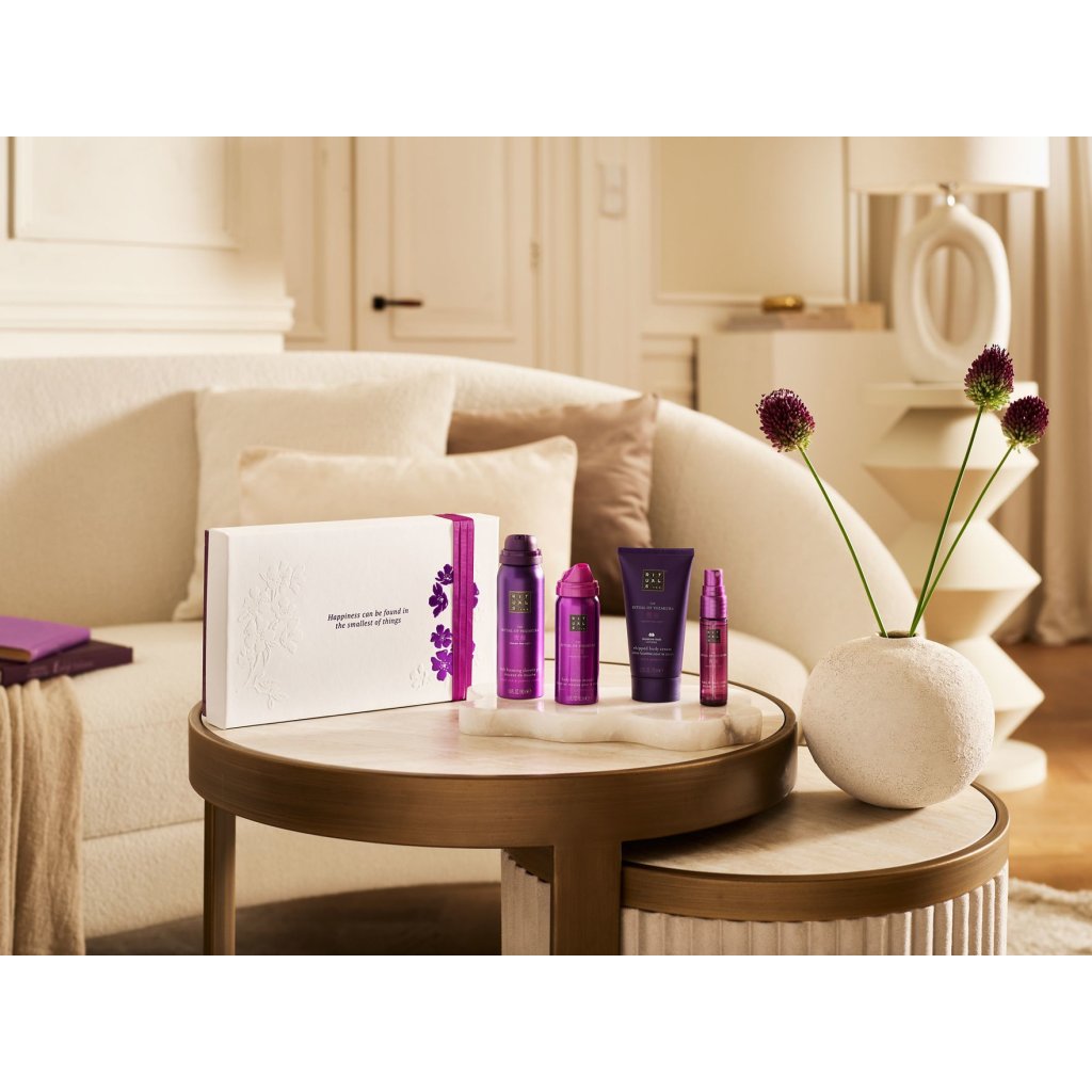 Inspirována japonskou tradicí obdivování třešňových květů v noci, zvanou Yozakura, vás malá dárková sada The Ritual of Yozakura zve k vychutnání každého okamžiku. Uvnitř najdete sprchovou pěnu, tělový krém, tělové mléko ve formě pěny a vlasový a tělový sprej. Tato sada, obohacená o výtažky z třešní Yoshino, saké a černé rýže, nabízí jedinečný a luxusní zážitek péče o sebe. Pěnivý sprchový gel (50 ml) • Jedinečná technologie gelu, který se mění na pěnu • Zanechává pokožku krásně provoněnou Tělový krém (70 ml) • Bohatý a sametový krém • Nemastný Tělové mléko ve formě pěny (50 ml) • Nelepí • Zklidňuje dehydratovanou a žíznivou pokožku Vlasový a tělový sprej (20 ml) • Bezalkoholové složení, vhodné pro citlivou pokožku • Bohatá květinová vůně